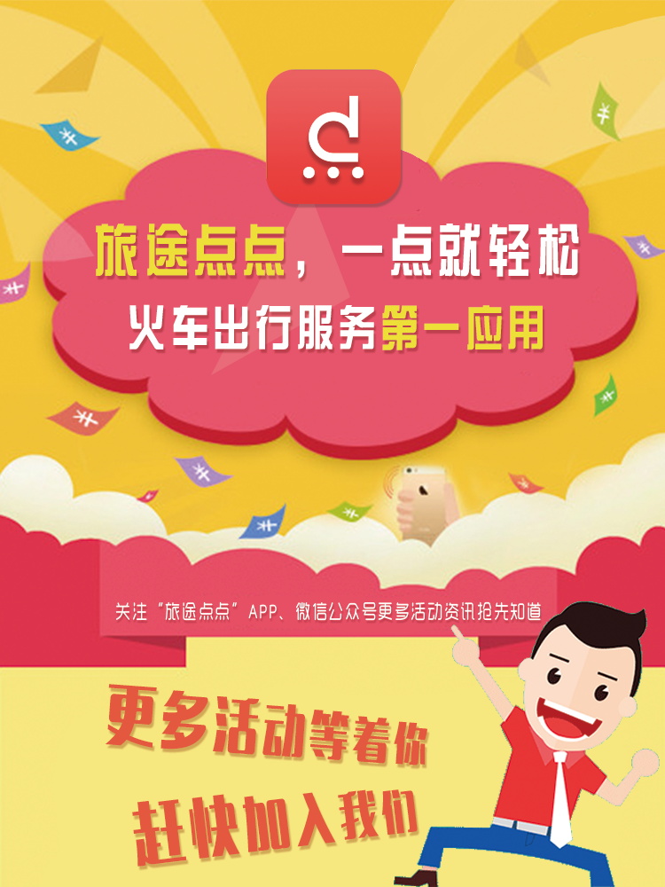 旅途点点作为一个火车出行服务平台,自上线以来,一直深受广大旅客的支持和喜爱。本着服务旅客、回馈旅客的原则,旅途点点用心策划了各式新颖活动,为用户带来不一样的体验。比如此次的转盘活动,旅客在享受游戏趣味的同时 还获得了实实在在的奖品,一举两得。